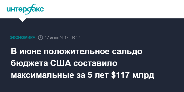 В июне положительное сальдо бюджета США составило максимальные за 5 лет $117 млрд