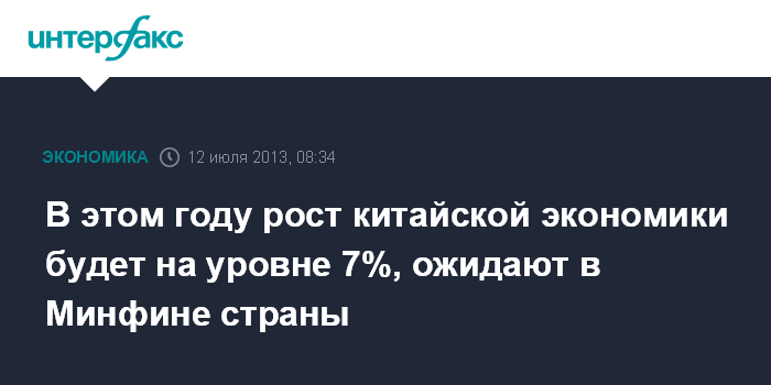 В этом году рост китайской экономики будет на уровне 7%, ожидают в Минфине страны