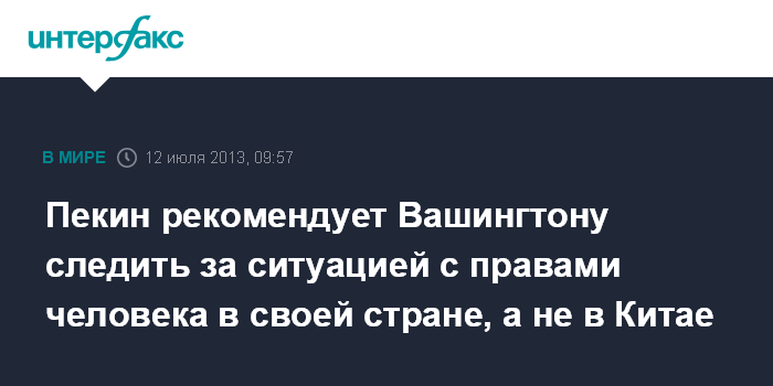 Пекин рекомендует Вашингтону следить за ситуацией с правами человека в своей стране, а не в Китае