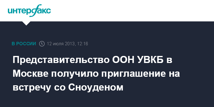 Москва. 12 июля. INTERFAX.RU - Представительство агентства ООН по делам беженцев (УВКБ) в Москве получило приглашение на встречу с бывшим сотрудников ЦРУ Эдвардом Сноуденом в пятницу в аэропорту "Шереметьево".