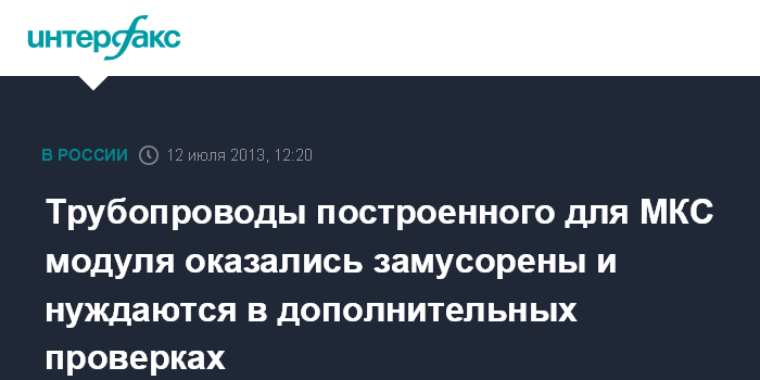 Трубопроводы построенного для МКС модуля оказались замусорены и нуждаются в дополнительных проверках