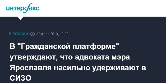 В "Гражданской платформе" утверждают, что адвоката мэра Ярославля насильно удерживают в СИЗО