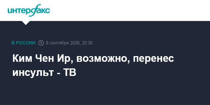Нью-Йорк. 9 сентября. ИНТЕРФАКС - Лидер Северной Кореи Ким Чен Ир, возможно, перенес инсульт, заявил во вторник телекомпании Си-Эн-Эн представитель американской разведки.