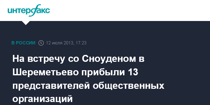 Москва. 12 июля. INTERFAX.RU - На встречу с экс-сотрудником ЦРУ Эдвардом Сноуденом, которая проходит в пятницу в аэропорту "Шереметьево", пришли 13 представителей общественных организаций.