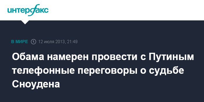Вашингтон. 12 июля. INTERFAX.RU - Президент США Барак Обама намерен созвониться позже в пятницу с президентом РФ Владимиром Путиным и обсудить сложившуюся ситуацию вокруг бывшего агента ЦРУ Эдварда Сноудена.