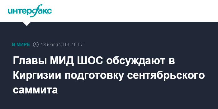Чолпон-Ата (Киргизия). 13 июля. INTERFAX.RU - Министры иностранных дел Шанхайской организации сотрудничества обсуждают вопросы подготовки к предстоящему в сентябре в Бишкеке саммиту глав государств организации.