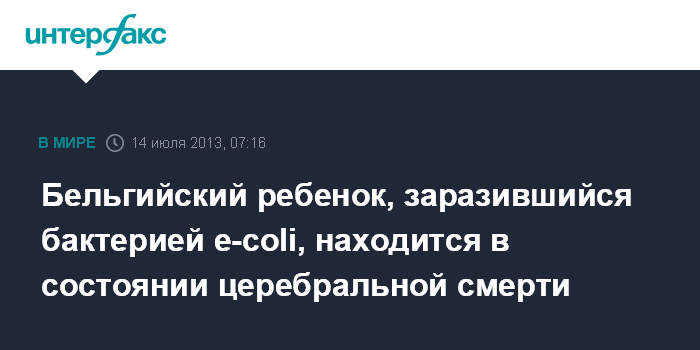 Бельгийский ребенок, заразившийся бактерией e-coli, находится в состоянии церебральной смерти