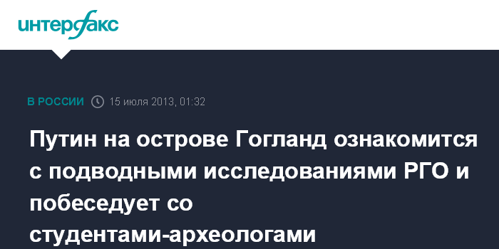 Путин на острове Гогланд ознакомится с подводными исследованиями РГО и побеседует со студентами-археологами