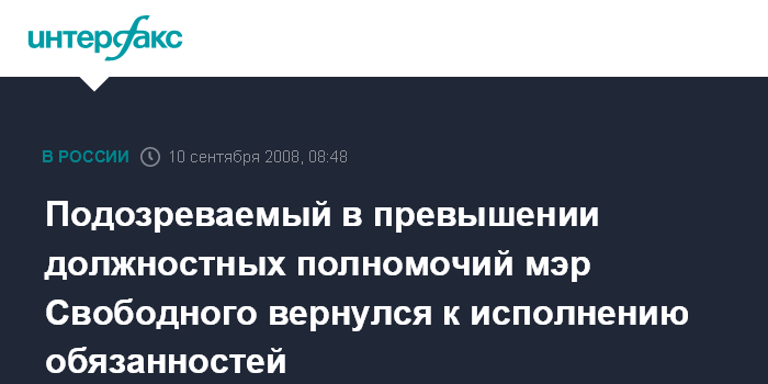 Подозреваемый в превышении должностных полномочий мэр Свободного вернулся к исполнению обязанностей