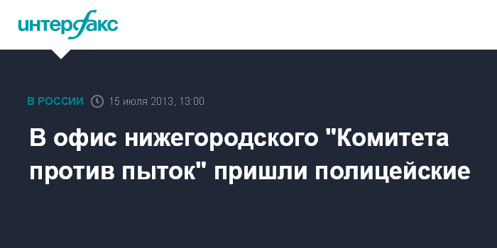 Нижний Новгород. 15 июля. INTERFAX.RU - Межрегиональная общественная организация "Комитет против пыток" в Нижнем Новгороде в понедельник получила от полиции запрос с требованием предоставить данные о сотрудниках, работавших в организации в течение последних трех лет.