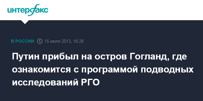 Гогланд (Финский залив). 15 июля. INTERFAX.RU - Президент России Владимир Путин прибыл на остров Гогланд в Финском заливе, где ознакомится с программой подводных исследований Русского географического общества (РГО) и побеседует со студентами-археологами.