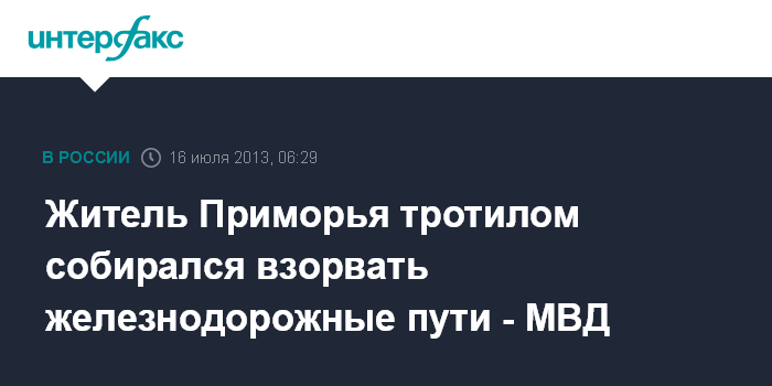 Житель Приморья тротилом собирался взорвать железнодорожные пути - МВД
