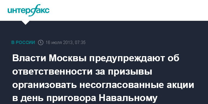Власти Москвы предупреждают об ответственности за призывы организовать несогласованные акции в день приговора Навальному