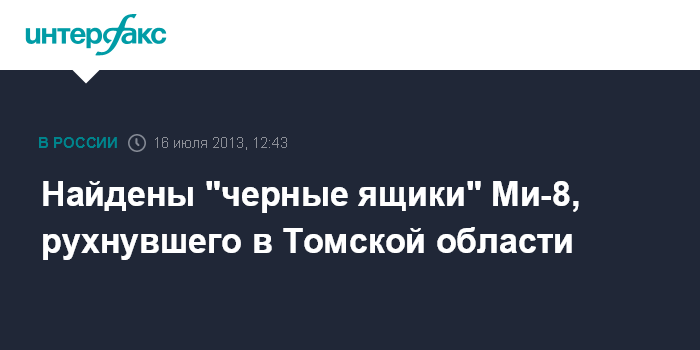 Томск. 16 июля. INTERFAX.RU - Следователи извлекли бортовые самописцы из вертолета Ми-8, разбившегося 14 июля в Томской области, сообщает пресс-служба Западно-Сибирского следственного управления на транспорте во вторник.