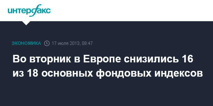 Во вторник в Европе снизились 16 из 18 основных фондовых индексов