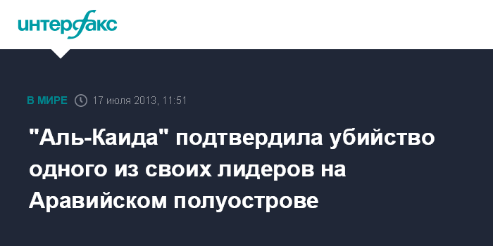 Лондон. 17 июля. INTERFAX.RU - Действующая в Йемене террористическая организация "Аль-Каида на Аравийском полуострове" подтвердила гибель одного из своих лидеров Саида аш-Шехри.