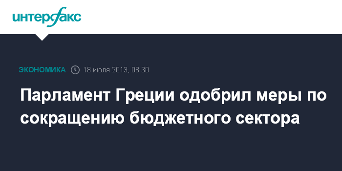 Брюссель. 17 июля. INTERFAX.RU - Парламент Греции одобрил в ночь на четверг очередной пакет мер, включающий в себя шаги по сокращению числа бюджетников и зарплат в бюджетном секторе, что позволит Афинам выполнить взятые на себя перед кредиторами обязательства.