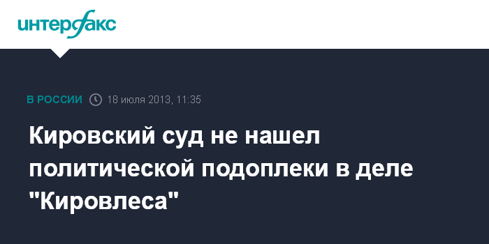 Киров. 18 июля. INTERFAX.RU - Показания оппозиционера Алексея Навального о политических мотивов его преследования по делу о хищении ничем не подтверждены, постановил Ленинский районный суда Кирова.