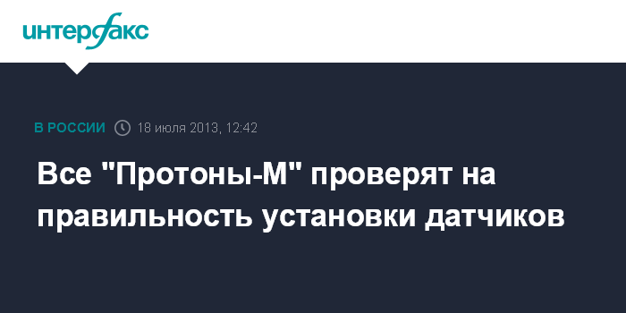Москва. 18 июля. INTERFAX.RU - Комиссия Роскосмоса проверит все ракеты-носители "Протон-М", находящиеся на хранении, для выявления возможной неправильной установки датчиков угловых скоростей.