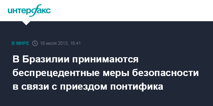 Бразилиа. 18 июля. INTERFAX.RU - Приезд папы римского Франциска на Всемирные дни католической молодежи в Рио-де-Жанейро потребует беспрецедентных мер безопасности, сообщил мэр этого города Эдуарду Паис.