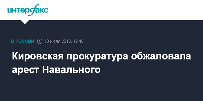 Москва/Киров. 18 июля. ИНТЕРФАКС - Кировская областная прокуратура внесла жалобу в апелляционном порядке в отношении приговора по делу Алексея Навального в части, касающейся взятия его под стражу, сообщили "Интерфаксу" в Генпрокуратуре России.