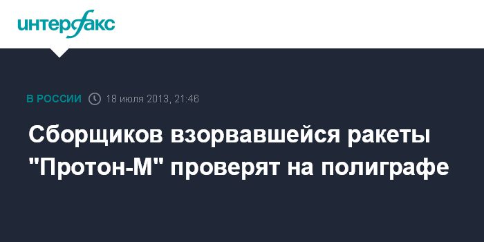 Москва. 18 июля. INTERFAX.RU - Подозреваемых в нарушении технологи сборки ракеты "Протон-М" проверят на детекторе лжи, сообщил в своем микроблоге в твиттере вице-премьер РФ Дмитрий Рогозин.