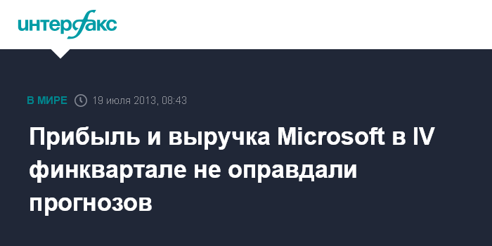 Прибыль и выручка Microsoft в IV финквартале не оправдали прогнозов