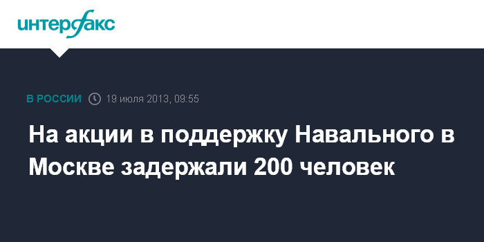 Москва. 19 июля. INTERFAX.RU - Две сотни человек были задержаны правоохранительными органами при проведении несогласованной с властями акции в центре Москвы в знак протеста против приговора оппозиционеру Алексею Навальному, сообщил "Интерфаксу" в пятницу глава департамента региональной безопасности мэрии Москвы Алексей Майоров.