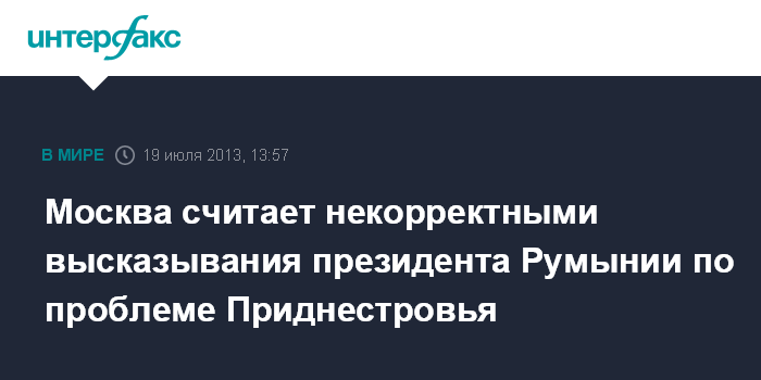 Москва считает некорректными высказывания президента Румынии по проблеме Приднестровья