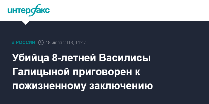 Убийца 8-летней Василисы Галицыной приговорен к пожизненному заключению