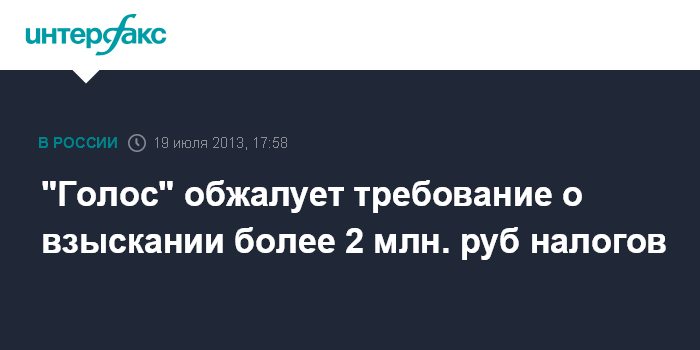 "Голос" обжалует требование о взыскании более 2 млн. руб налогов
