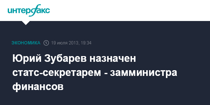 Юрий Зубарев назначен статс-секретарем - замминистра финансов