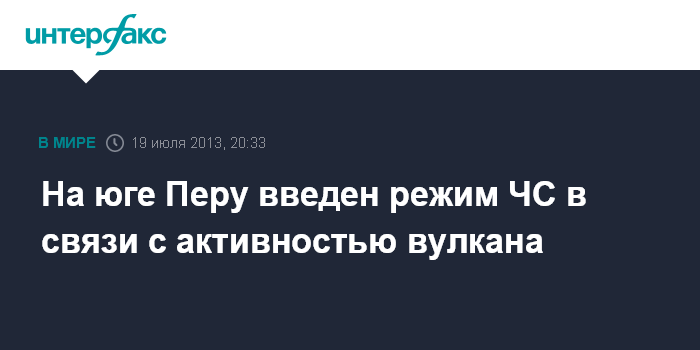 Лима. 19 июля. ИНТЕРФАКС - Власти провинции Арекипа на юге Перу объявили о введении режима чрезвычайного положения в семи районах в связи с активностью вулкана Сабанкая, пишет в пятницу местная газета El Comercio.