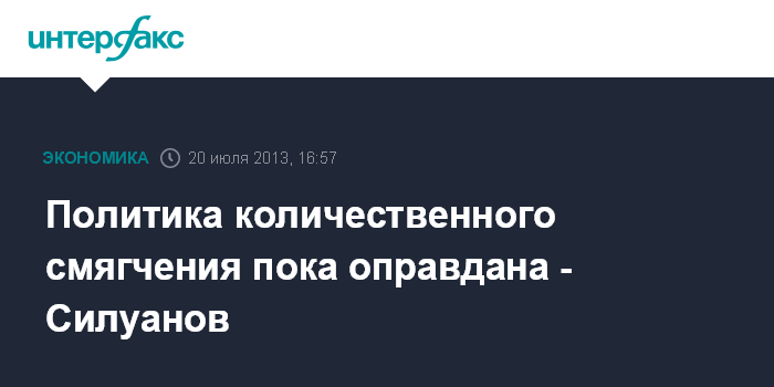 Москва. 20 июля. INTERFAX.RU - Политика количественного смягчения, которую проводит ряд стран, оправдана на этапе стагнирования экономик, речи о ее быстром сворачивании пока не идет, считает министр финансов РФ Антон Силуанов.