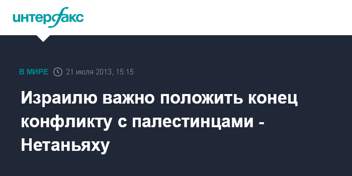 Израилю важно положить конец конфликту с палестинцами - Нетаньяху