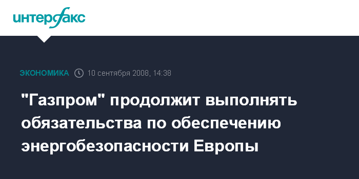 "Газпром" продолжит выполнять обязательства по обеспечению энергобезопасности Европы