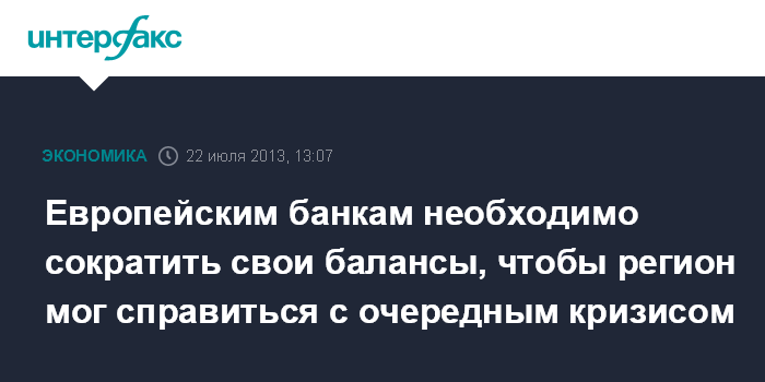 По оценкам экспертов, банкам еврозоны необходимо сократить активы не менее чем на 2,7 трлн к 2016 году, чтобы их балансы были "устойчивыми".