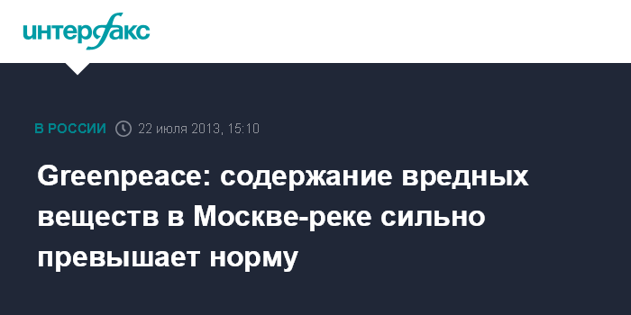 Москва. 22 июля. INTERFAX.RU - Активисты российского отделения Greenpeace обнаружили в Москве-реке повышенное содержание вредных веществ, которые представляют угрозу для животного и растительного мира, а также для жителей столицы.