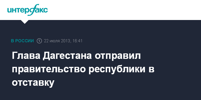 Махачкала. 22 июля. INTERFAX.RU - Врио главы Дагестана Рамазан Абдулатипов отправил в отставку правительство республики.