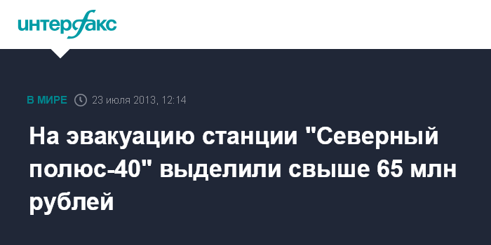 Москва. 23 июля. INTERFAX.RU - Более 65 млн рублей выделяется из резервного фонда правительства на проведение внеплановой ледокольной операции по срочной эвакуации дрейфующей научно-исследовательской станции "Северный полюс-40". Соответствующее распоряжение подписал премьер РФ Дмитрий Медведев.