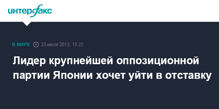 Причиной своего желания уйти в отставку оппозиционный политик назвал серьезное поражение Демократической партии Японии на недавних выборах в верхнюю палату парламента.
