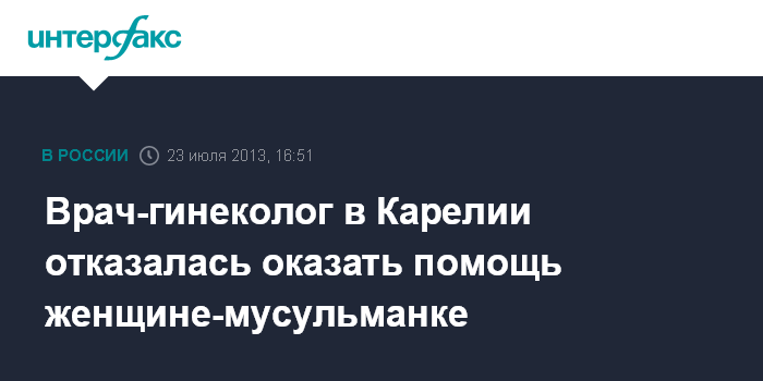 Врач-гинеколог в Карелии отказалась оказать помощь женщине-мусульманке