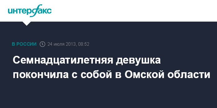 Омск. 24 июля. INTERFAX.RU - Правоохранительные органы изучают обстоятельства гибели 17-летней жительницы Тевризского района Омской области, которая покончила с собой, сообщает в среду пресс-служба УМВД по региону.