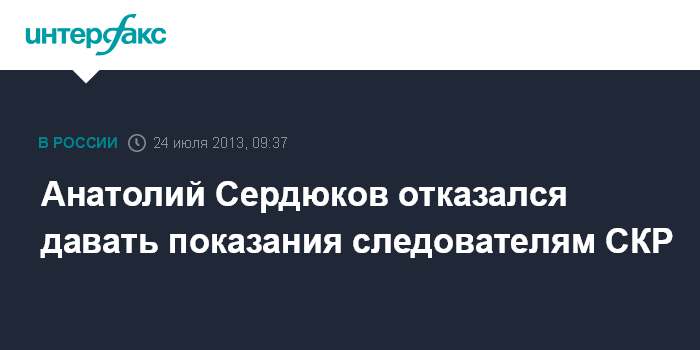 Москва. 24 июля. ИНТЕРФАКС - Экс-министр обороны Анатолий Сердюков во вторник побывал на допросе в СКР в качестве свидетеля, но от дачи показаний отказался, сославшись на 51 статью Конституции, сообщил "Интерфаксу" адвокат бывшего главы военного ведомства Генрих Падва.
