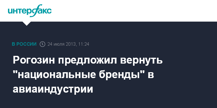Москва. 24 июля. INTERFAX.RU - Вице-премьер Дмитрий Рогозин призвал возродить национальные авиационные бренды, отказавшись от использования аббревиатур в названии новых авиационных разработок.