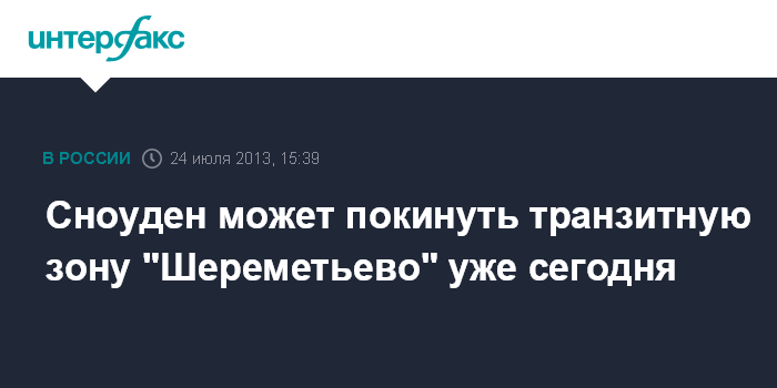 Москва. 24 июля. INTERFAX.RU - Бывший сотрудник ЦРУ Эдвард Сноуден в ближайшие часы может выйти из "стерильной" зоны московского аэропорта, сообщил "Интерфаксу" в среду источник, знакомый с ситуацией. По его словам, американцу доставят новую одежду. Справку, позволяющую покинуть транзитную зону аэропорта "Шереметьево", вручит ему адвокат Анатолий Кучерена.