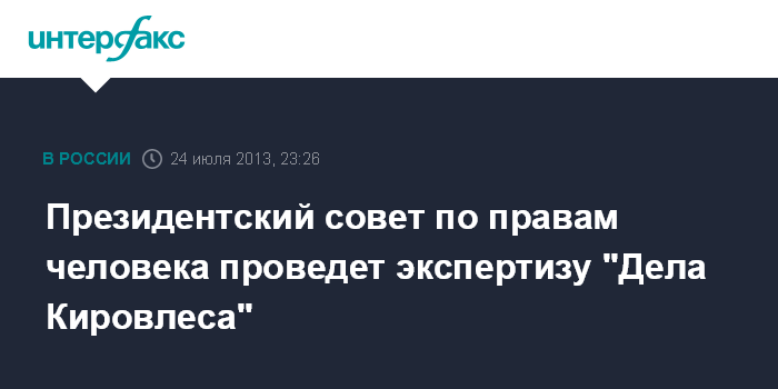 Москва. 24 июля. INTERFAX.RU - Президентский совет по правам человека проведет экспертизу "Дело Кировлеса" против оппозиционера Алексея Навального И Петра Офицерова, аналогичную той, что СПЧ готовил по делу "ЮКОСа".