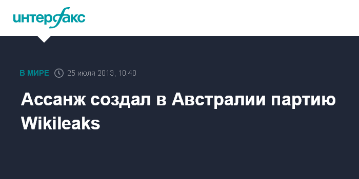 Сидней. 25 июля. INTERFAX.RU - Основатель сайте Wikileaks Джулиан Ассандж официально объявил в четверг о создании партии Wikileaks, чтобы принять участие в сентябрьских выборах в парламент Австралии.