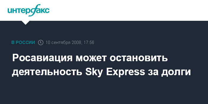 Москва. 10 сентября. INTERFAX.RU - Федеральное агентство воздушного транспорта может остановить деятельность низкобюджетного перевозчика Sky Express, который, как и AiRUnion, является проектом совладельцев "Красноярских авиалиний" - братьев Бориса и Александра Абрамовичей.