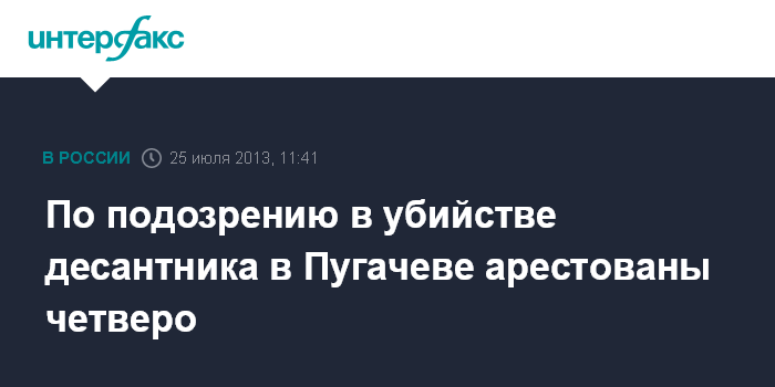 Москва. 25 июля. INTERFAX.RU - Четверо подозреваемых в убийстве десантника арестованы в Саратовской области, сообщил официальный представитель СКР Владимир Маркин.